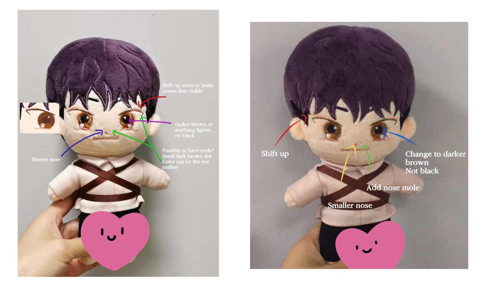 -Change mouth, nose and eye crease thread on Side Effects Doll to match Natural Doll